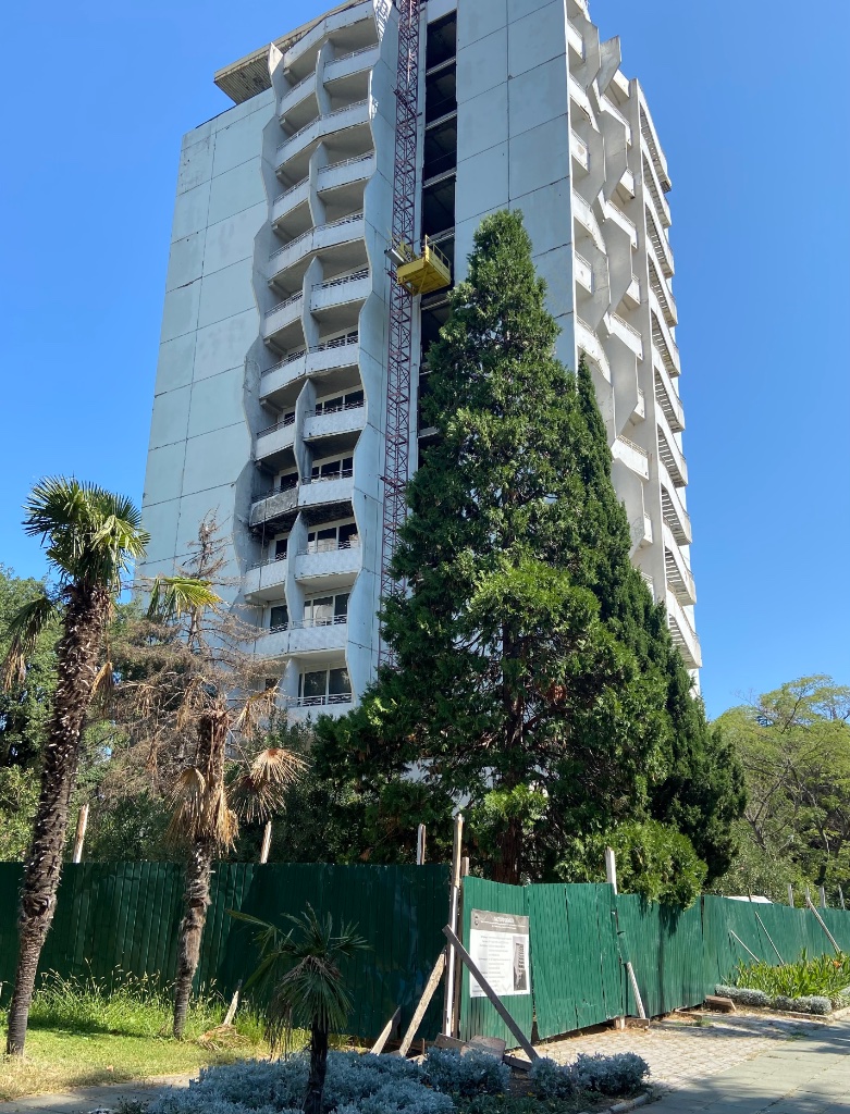#916С печалью узнала что работы по ремонту 4 корпуса в санатории «Крым» остановлены. И на будущий год не профинансированы… Ходим мимо памятника арестованным заместителям министра обороны.