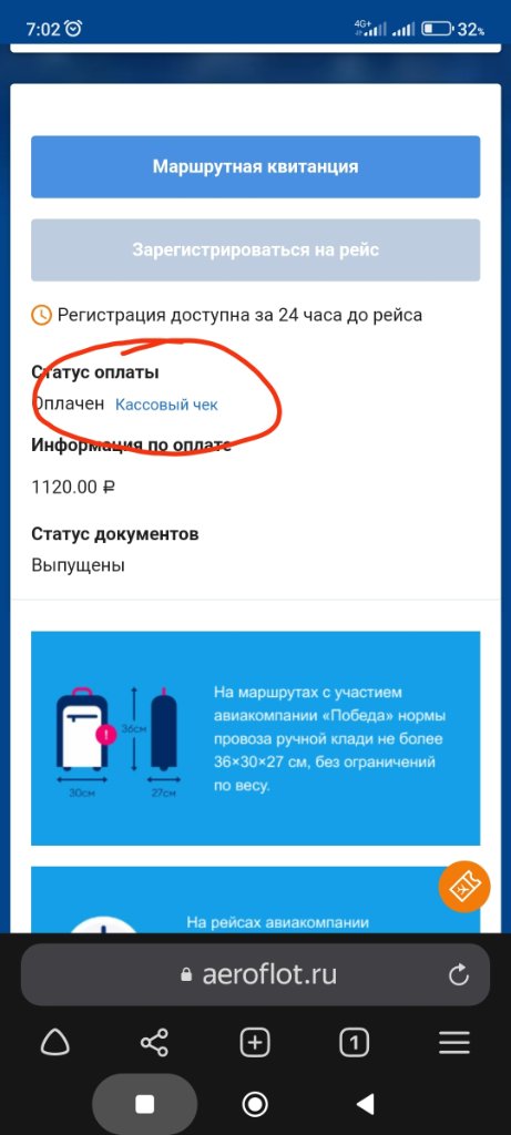Зайдите на сайт Аэрофлота. Войдите в свой личный кабинет. У вас появится ваша бронь на билеты. Войдите в билеты и там увидите кассовый чек, скачайте его и распечатайте.Но это можно сделать именно на сайте, в приложении этого почему-то нет.