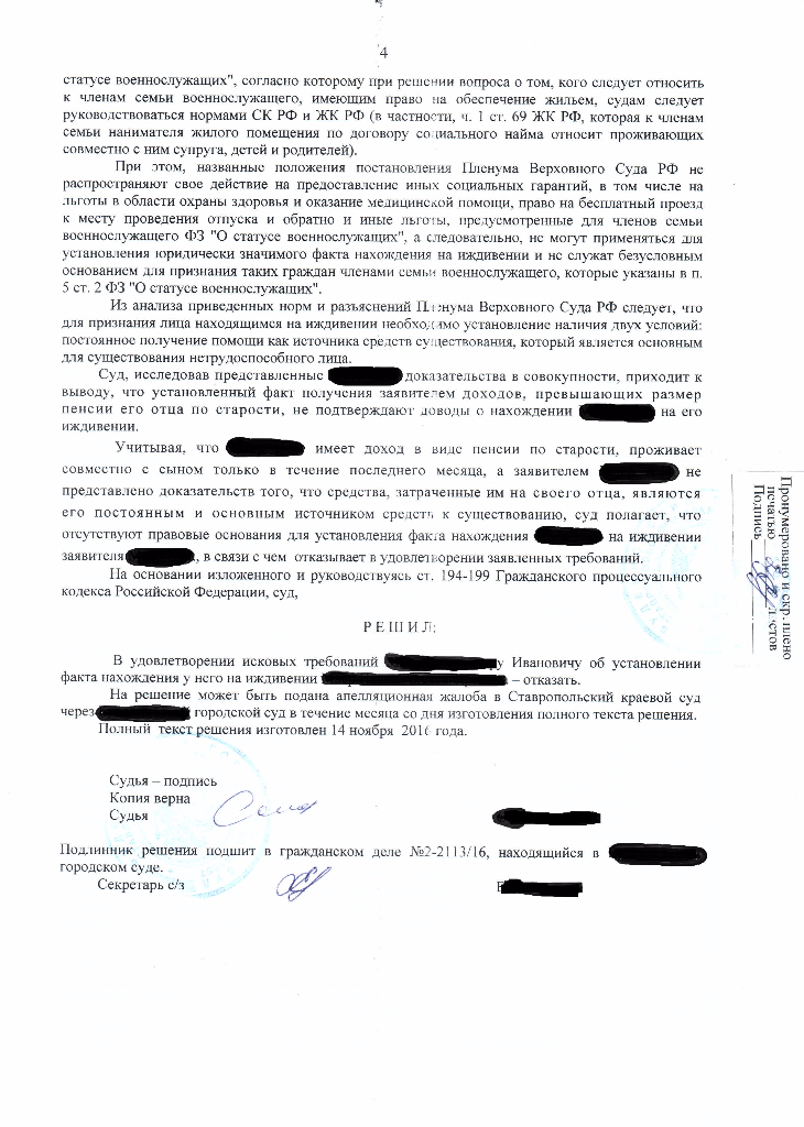 Обратился в суд об установлении факта нахождения на иждивении. В суде получил отказ.