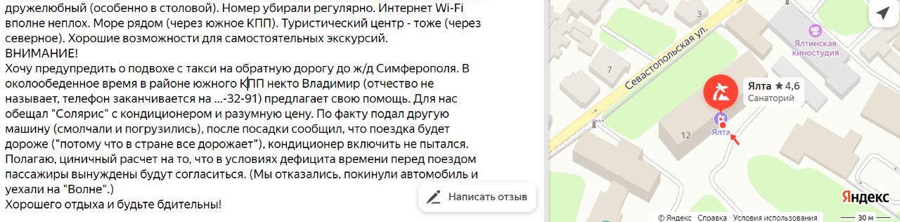 В качестве иллюстрации прикладываю фрагмент отзыва от 15.07.2024 по нашему санаторию на Яндекс-картах: