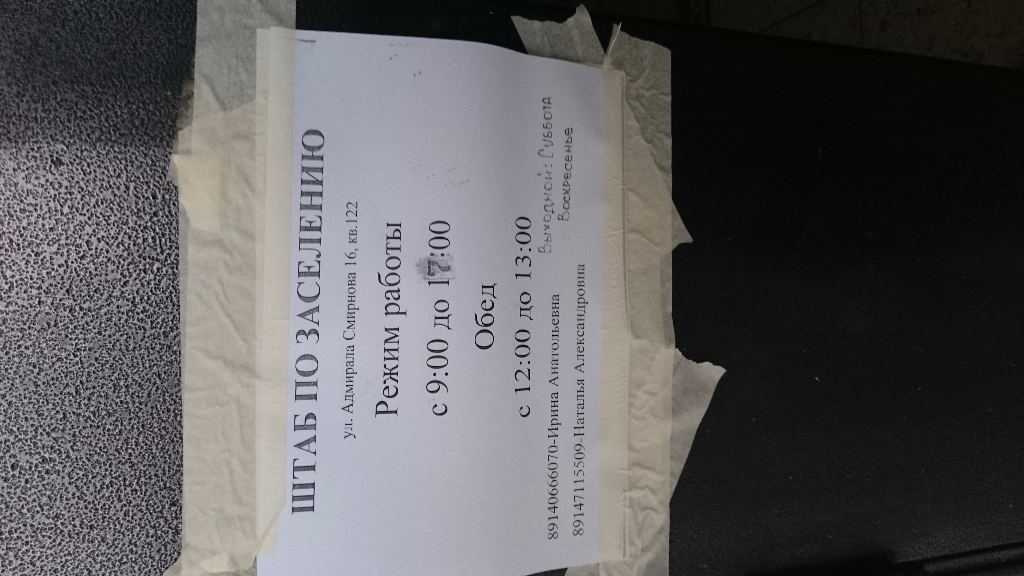 #9313Сегодня звонили по этому номеру 278-90-60 диспетчер, сказали не заселяют нет воды. Дали номер 89243350061 сказали что это номер начальника. Звонили трубку взяли сказали что нет какой того приказа и что до нового года должны заселить.