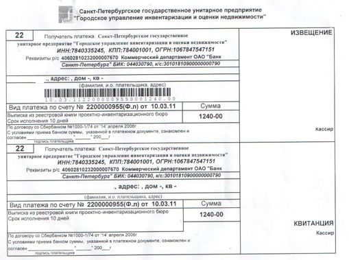 Примечание: в платежке перед "адрес, дом, квартира" должна быть записана фамилия и инициалы плательщика (заказчика).