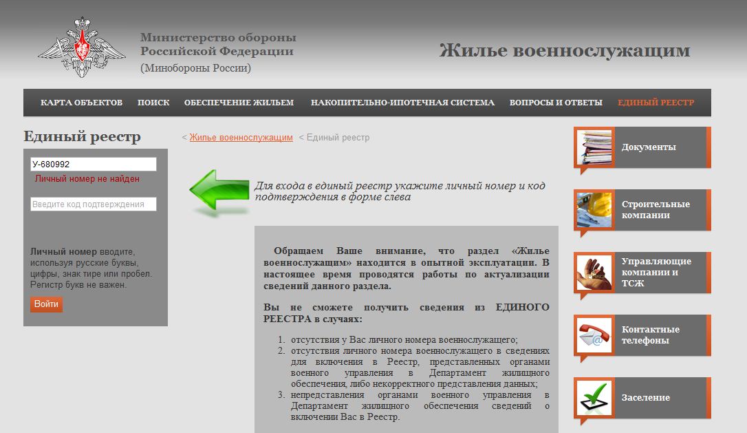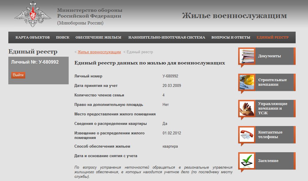 Электронная очередь на жилье Минобороны РФ