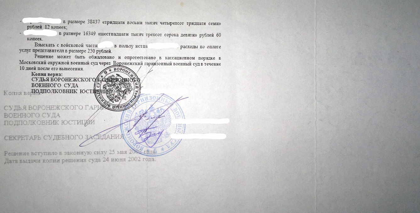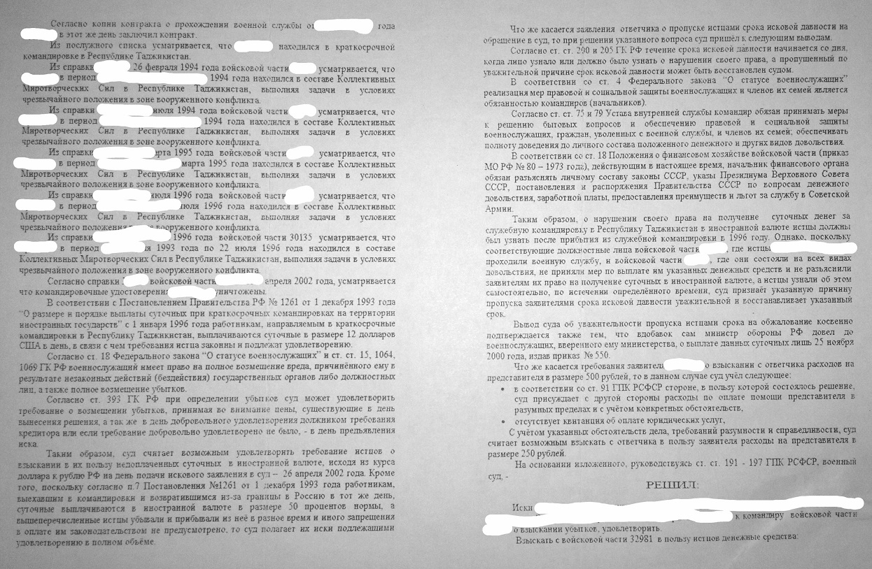 я судился в апреле 2002, извиняюсь за неточностьBOBA_25RUS писал(а): я судился в 2000г (суд выиграл, так как было доказано, что 3х месячный срок не пропущен, ибо командование знало, но не довело про суточные в 36 баксов в день) за командировочные расходы, которые должны были в баксах по курсу платить( и. как обычно, "забывали" про оплату)
