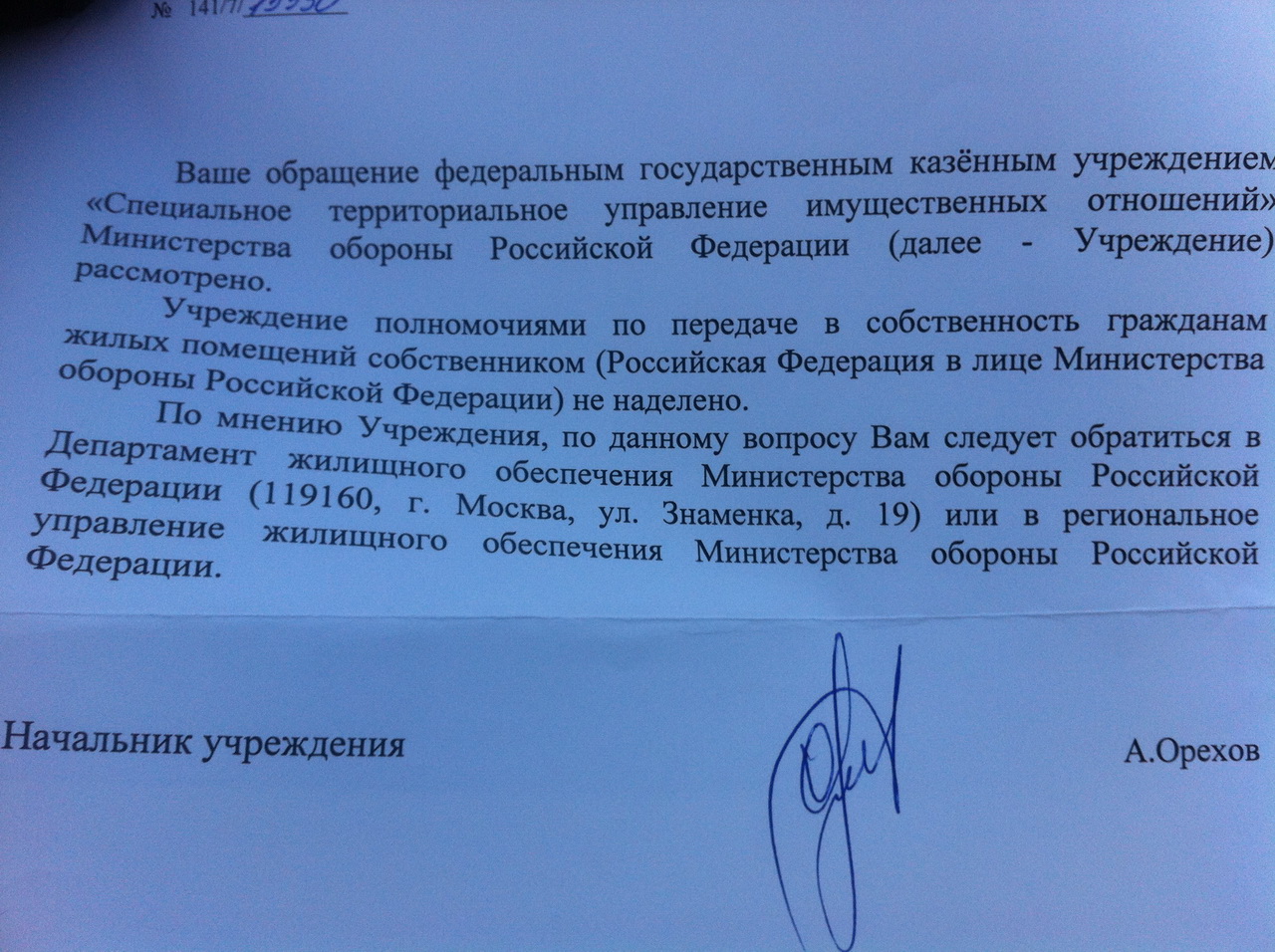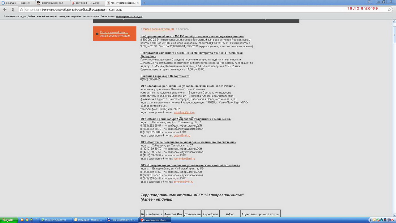 #10005Нам так ответили из ЦТУИО. И закончили письмо:"Дополнительно сообщается, что вопросы обеспечения жилыми помещениями в Вооруженных Силах РФ, и в том числе вопросы приватизации жилых помещений, отнесены к компетенции Департамента жилищного обеспечения МО РФ".Сегодня получил ответ из СТУИО. Отправлял по электронке 26 сентября. Настораживает ответ: "Учреждение полномочиями по передаче в собственность гражданам жилых помещений собственником (РФ в лице МО РФ) не наделено" Это нормально, раньше вроде по-другому отвечали.