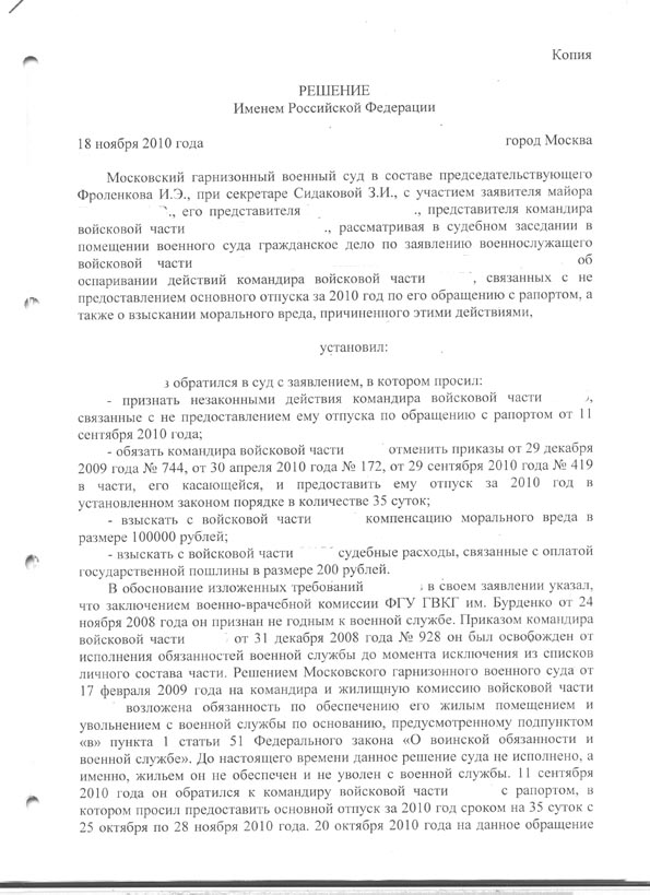 Жаль, что обошли вопрос доведения приказа об отпуске до военнослужащего.