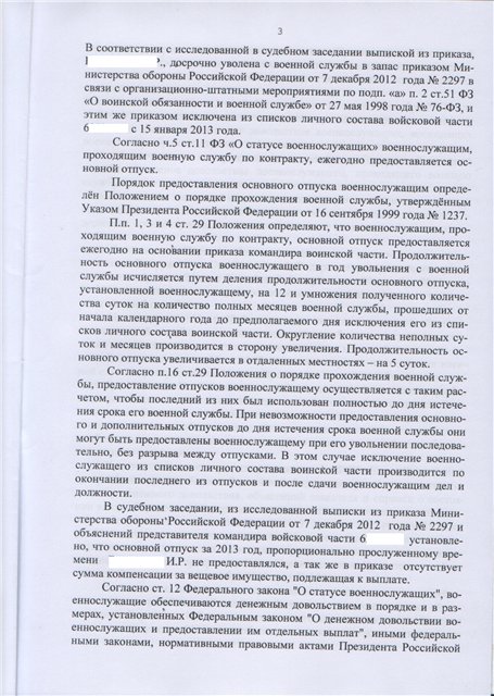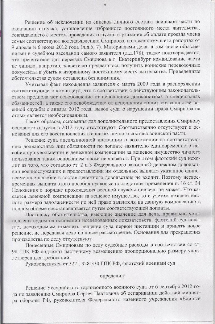 -обязать командира войсковой части № и Министра обороны Российской Федерации восстановить его в списках личного состава войсковой части №, предоставить основной отпуск за 2012 год и обеспечить положенными видами довольствия.