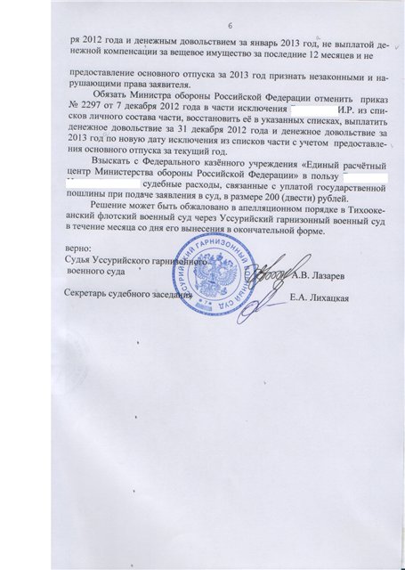 Решение может быть обжаловано в апелляционном порядке в Московский окружной военный суд через Нижегородский гарнизонный военный суд в течение месяца со дня его принятия судом в окончательной форме.