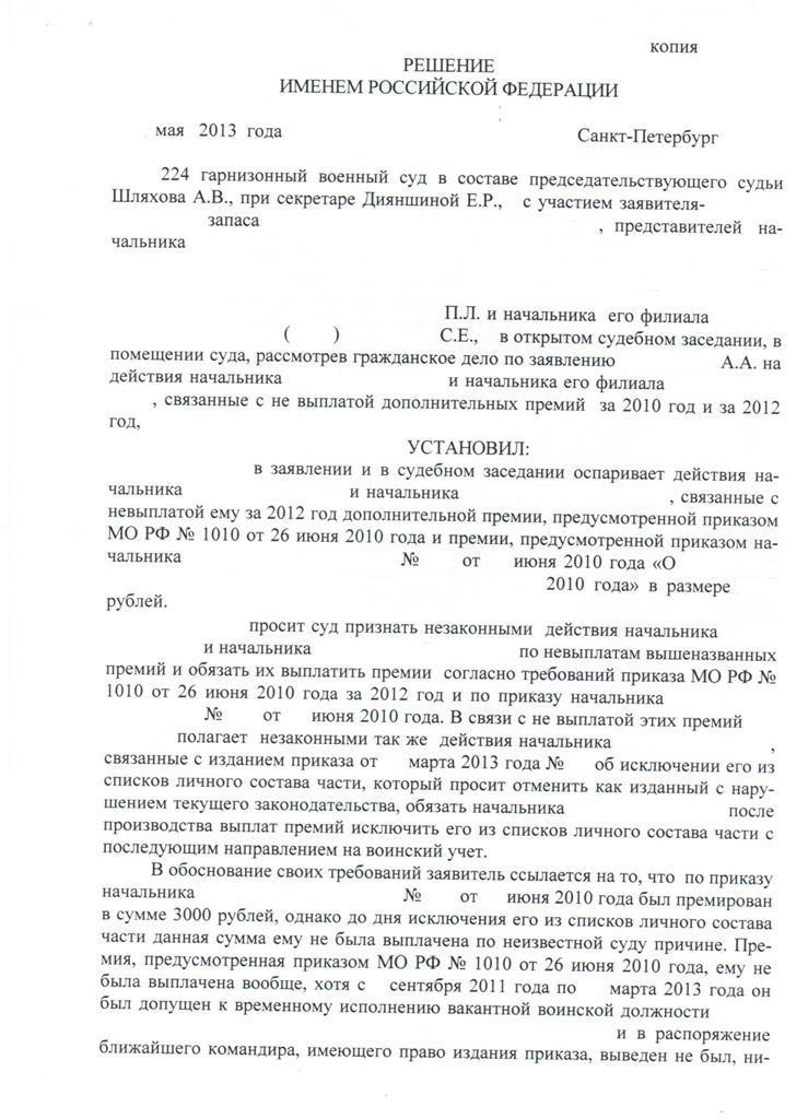 Выкладываю своё проигранное дело по выезду за пределы гарнизона. Хотя и планировал обжаловать ( на рапорте не имеется обоснования отказа заинтересованным лицом), но по совету знающих людей не стал. Другим наука будет...
