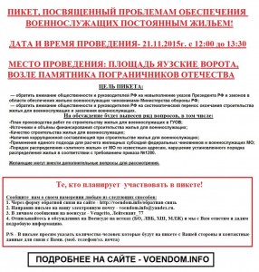 21.11.2015 года пройдет очередной пикет, посвященный проблемам строительства жилья для военнослужащих.