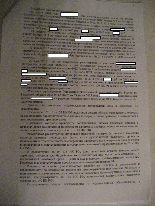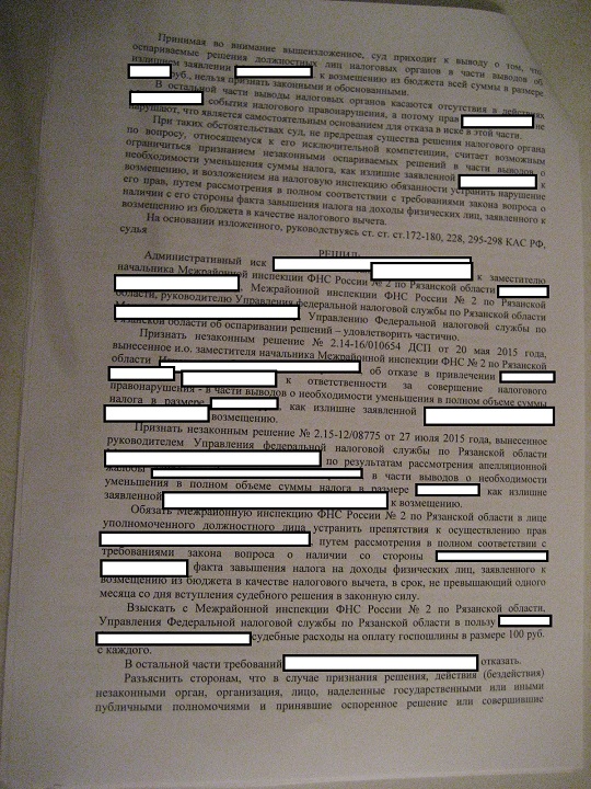 решение суда по налоговому вычету