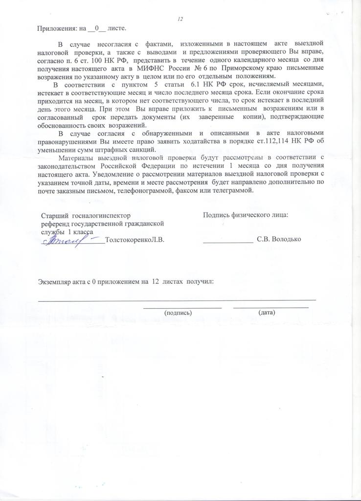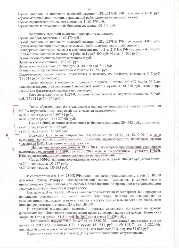 Здравствуйте уважаемые форумчане. я получил налоговый вычет в феврале 2014 года. сейчас налоговая прислала решение о проведении выездной налоговой проверки по правильности исчисления и уплаты налогов, и уведомление о необходимости предоставить им документы договор купли продажи квартиры и т.д.. я им разъяснил, что налоги сам не исчисляю и зарплату получаю уже с вычетом 13 процентов, указанные документы предоставлять отказываюсь. далее прислали акт проверки (прикрепляю), в котором они решили доначислить мне налог в размере.... подскажите как себя лучше защитить в прокуратуру или в суд, в гражданский или военный? в чём они не правы и начто давить?